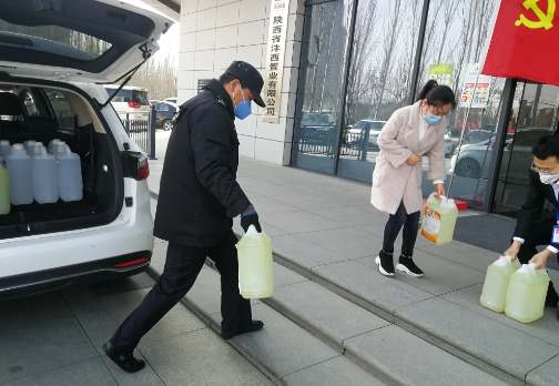 2020年3月3日,咸潤實業向西咸新區灃西新城疫情防控指揮部辦公室捐贈酒精、84消毒液等疫情防控用品,共計400斤。守望相助,共克時艱,咸潤實業用實際行動共抗疫情,希望這批物資能為疫情防控貢獻一份微薄之力。