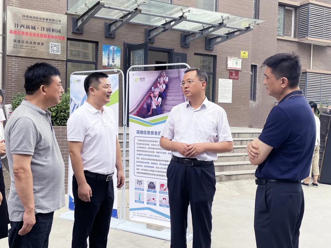 張渭勉勵陜西咸潤實業(yè)發(fā)展公司要繼續(xù)加強與相關安全科技公司的深度合作,加大研發(fā)投入,不斷更新完善高樓應急安全逃生智聯(lián)系統(tǒng),使其更具科學性、安全性和實用性;要求灃西新城及時總結在高層小區(qū)推廣應用高樓應急安全逃生系統(tǒng)方面的經驗和做法,形成經驗材料,以便進一步在全區(qū)推廣;要求把先進安全科技產品的研發(fā)和推廣應用與新區(qū)推進安全發(fā)展示范城市創(chuàng)建工作結合起來,進一步加大支持力度,不斷增強新區(qū)人民群眾應對各類災害事故的應急逃生能力,以安全科技創(chuàng)新成果支撐新區(qū)安全發(fā)展。