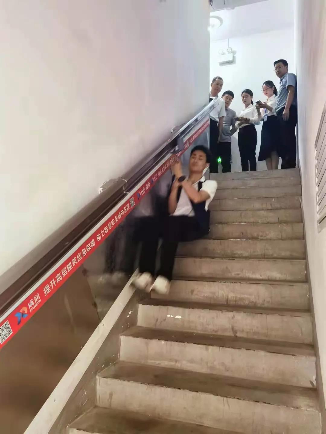 在灃西新城灃潤和園社區(qū),張渭聽取了灃西新城關于高層樓房應急安全設施建設工作的簡要匯報;實地考察了灃西新城引進的高科技企業(yè)---陜西咸潤實業(yè)發(fā)展公司研發(fā)的高樓應急安全逃生智聯(lián)系統(tǒng),該系統(tǒng)通過對逃生通道內原有的樓梯扶手進行改造,使其具備了逃生滑道的功能,在居民面臨火災、地震等險情時,通過該扶手,能實現(xiàn)快速下行逃生,從30層樓下行至1樓僅需3分鐘,切實提高了高層樓房居民的應急自救逃生能力。