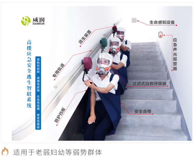 該系統(tǒng)可有效解決高層建筑及各類(lèi)人員密集場(chǎng)所內(nèi)涉險(xiǎn)人員的群體性緊急疏散難題, 在傳統(tǒng)“防、消、救”的層面上,增加了“逃”的功能。當(dāng)發(fā)生火災(zāi)等緊急情況時(shí),第一時(shí)間實(shí)現(xiàn)聯(lián)動(dòng)報(bào)警,百米高層3分鐘快速逃生,高效有序撤離至地面安全地帶。同時(shí)結(jié)合物聯(lián)網(wǎng)+功能,對(duì)樓內(nèi)人員進(jìn)行生命探測(cè)、位置追蹤,為消防隊(duì)員提供精準(zhǔn)救援信息,將主動(dòng)自救互救和協(xié)同組織救援緊密結(jié)合,有效提高救援全過(guò)程質(zhì)效,降低人員密集場(chǎng)所群死群傷重特大火災(zāi)事故的發(fā)生幾率,扭轉(zhuǎn)重特大事故多發(fā)被動(dòng)局面,減少人員傷亡及財(cái)產(chǎn)損失,全方面保障人民生命財(cái)產(chǎn)安全,填補(bǔ)人員密集場(chǎng)所緊急疏散基礎(chǔ)設(shè)施建設(shè)空白。