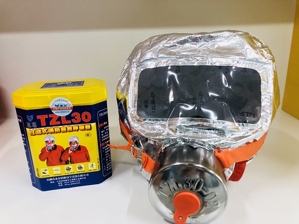 使用過濾式自救呼吸器,其過濾裝置吸附、吸收、催化及直接過濾的作用可去除火災產生的一氧化碳、氰化氫等有害氣體及煙霧,保護逃生人員不受毒氣侵害。