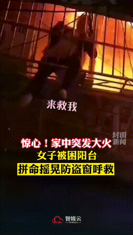 2021年1月19日,四川達州一居民家中失火,女子被困陽臺,拼命搖晃防盜窗呼救。